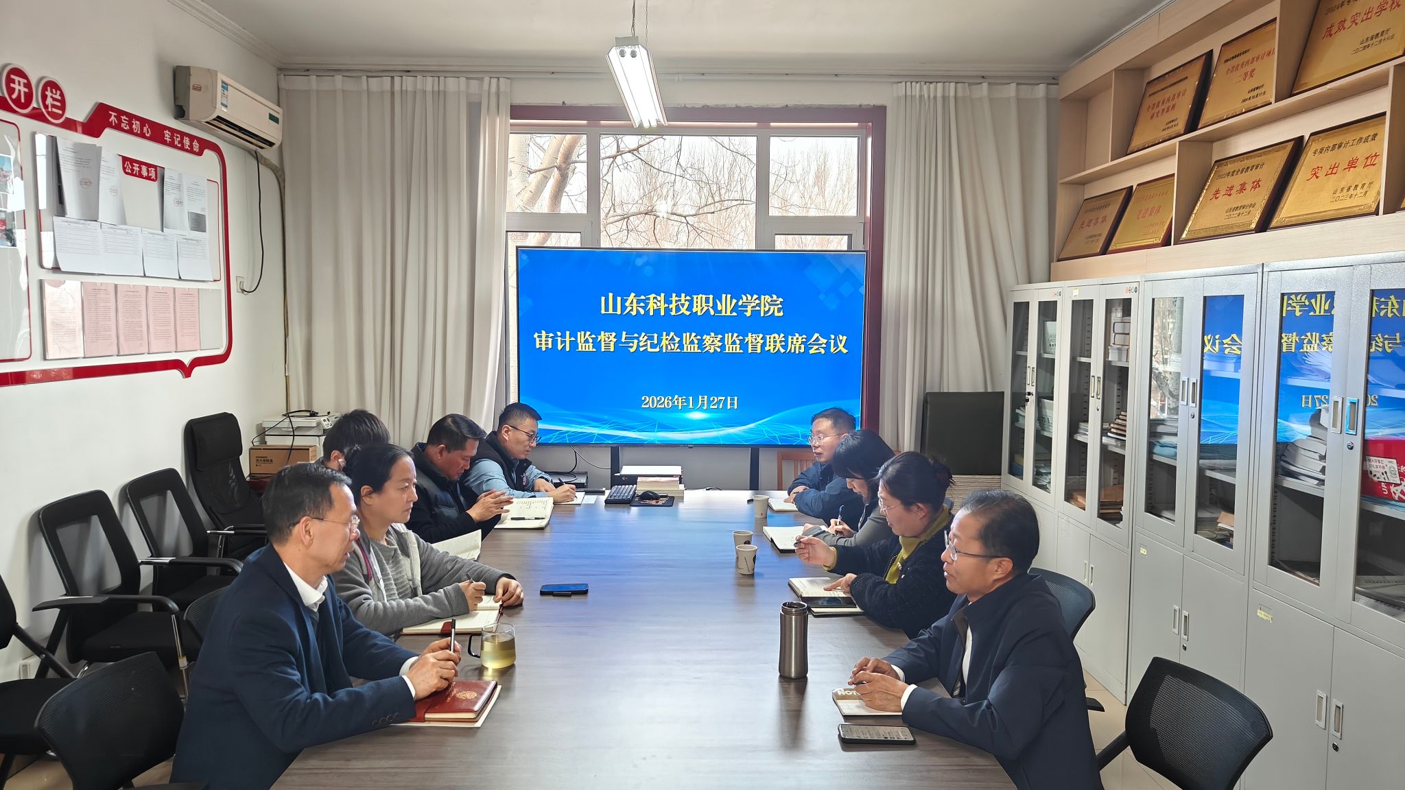 为强化审计监督与纪检监察监督贯通协同,凝聚监督合力,学校出台了《山东科技职业学院审计监督与纪检监察监督贯通协同机制实施办法》,建立了贯通协同机制,审计监督效能进一步提升。2026年1月27日,审计处与纪检监察室(纪委办公室)召开联席会议,通报2025年工作开展情况,分析当前面临的新形势,研究谋划2026年工作。审计处、纪检监察室(纪委办公室)全体人员参会。
